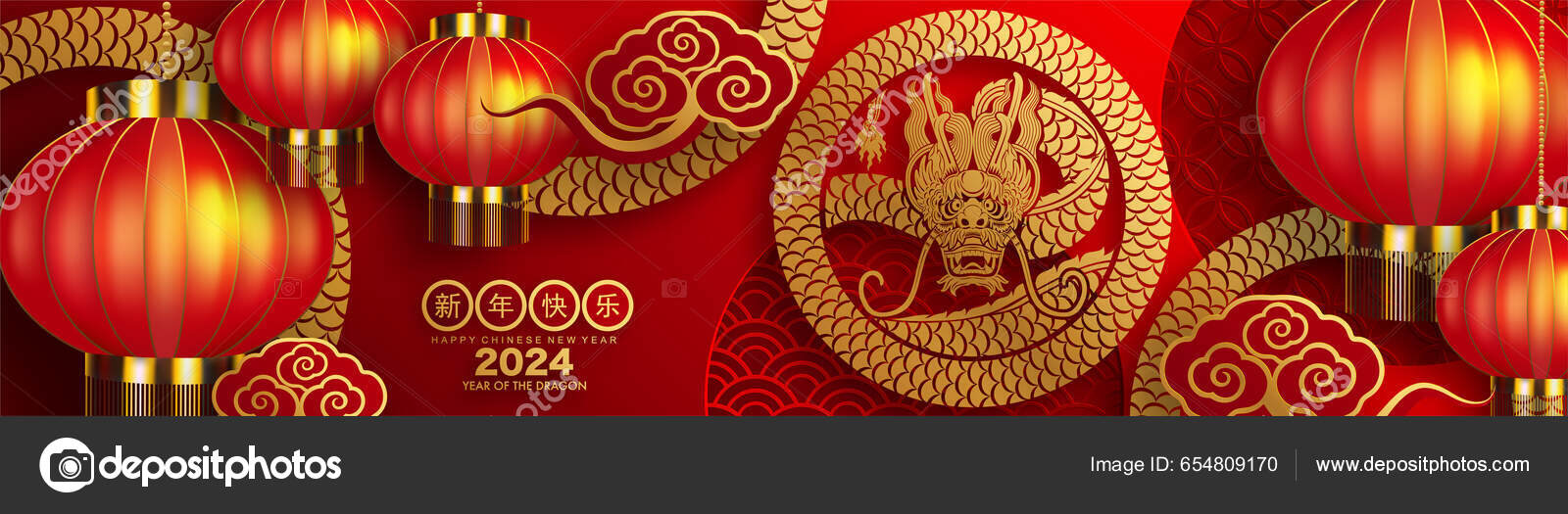 Happy Chinese New Year 2024 Dragon Zodiac Sign Flower Lantern