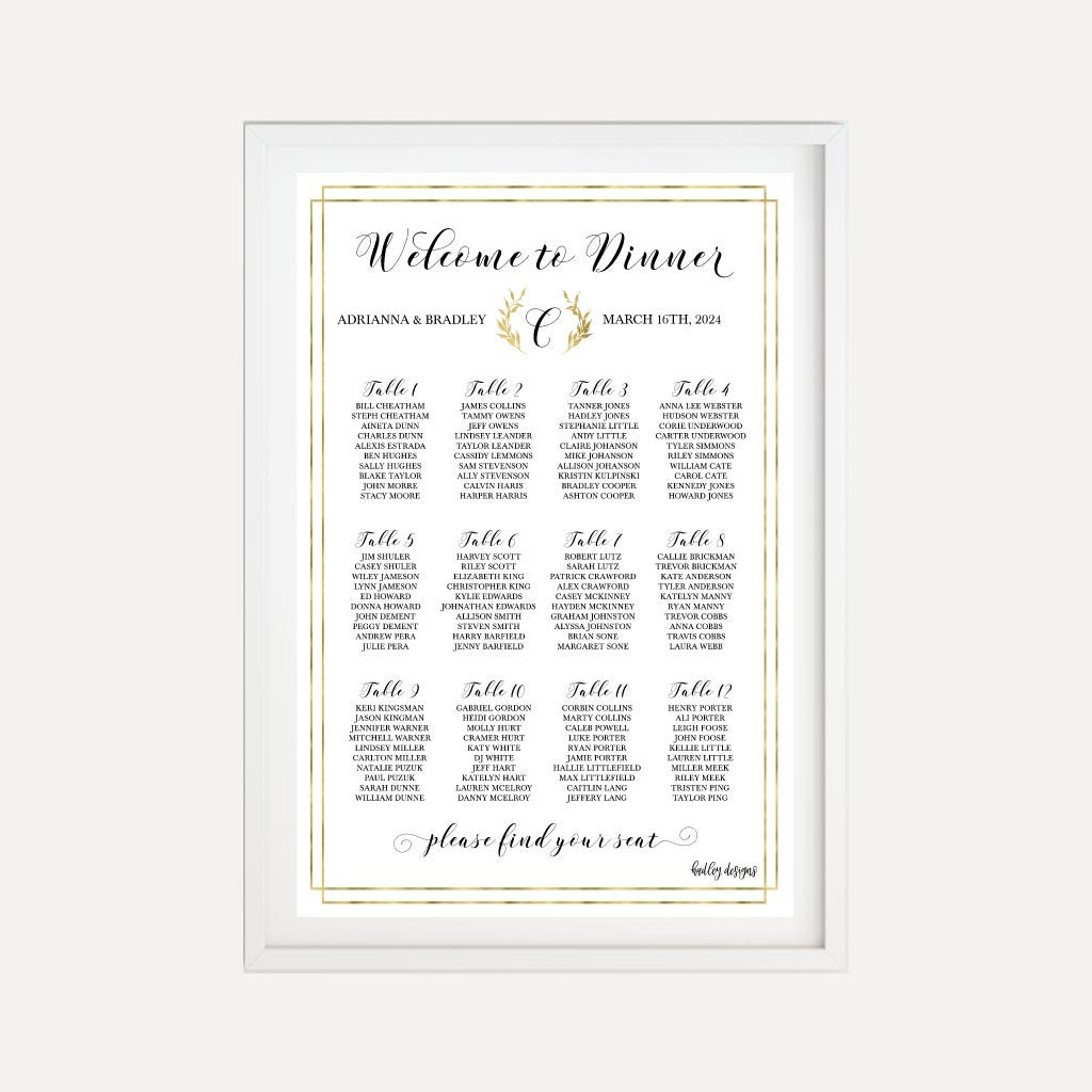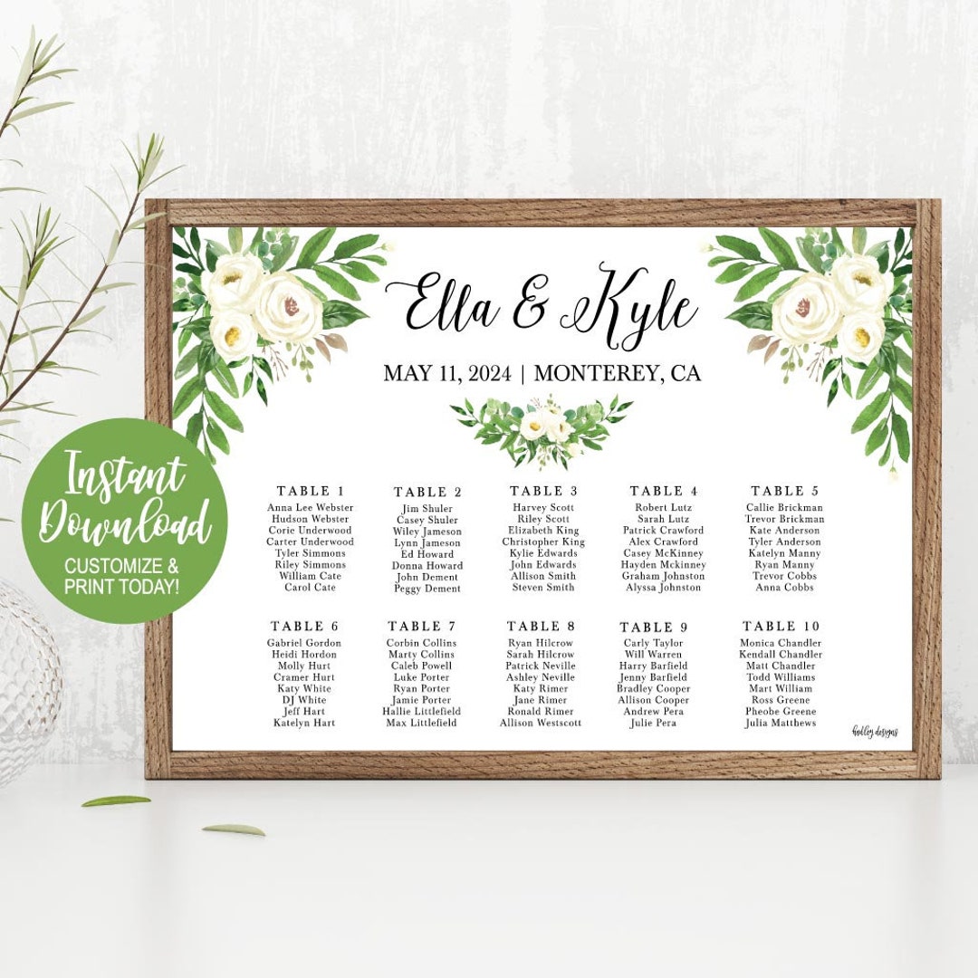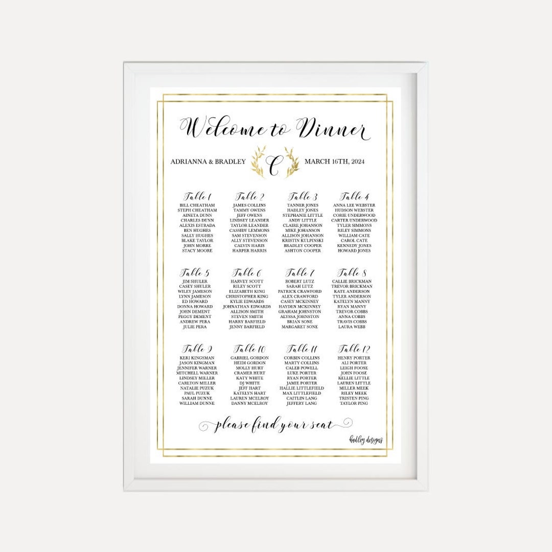 Gold Schimmer Laurel Hochzeit Sitzplan Vorlage Vorlage Etsy